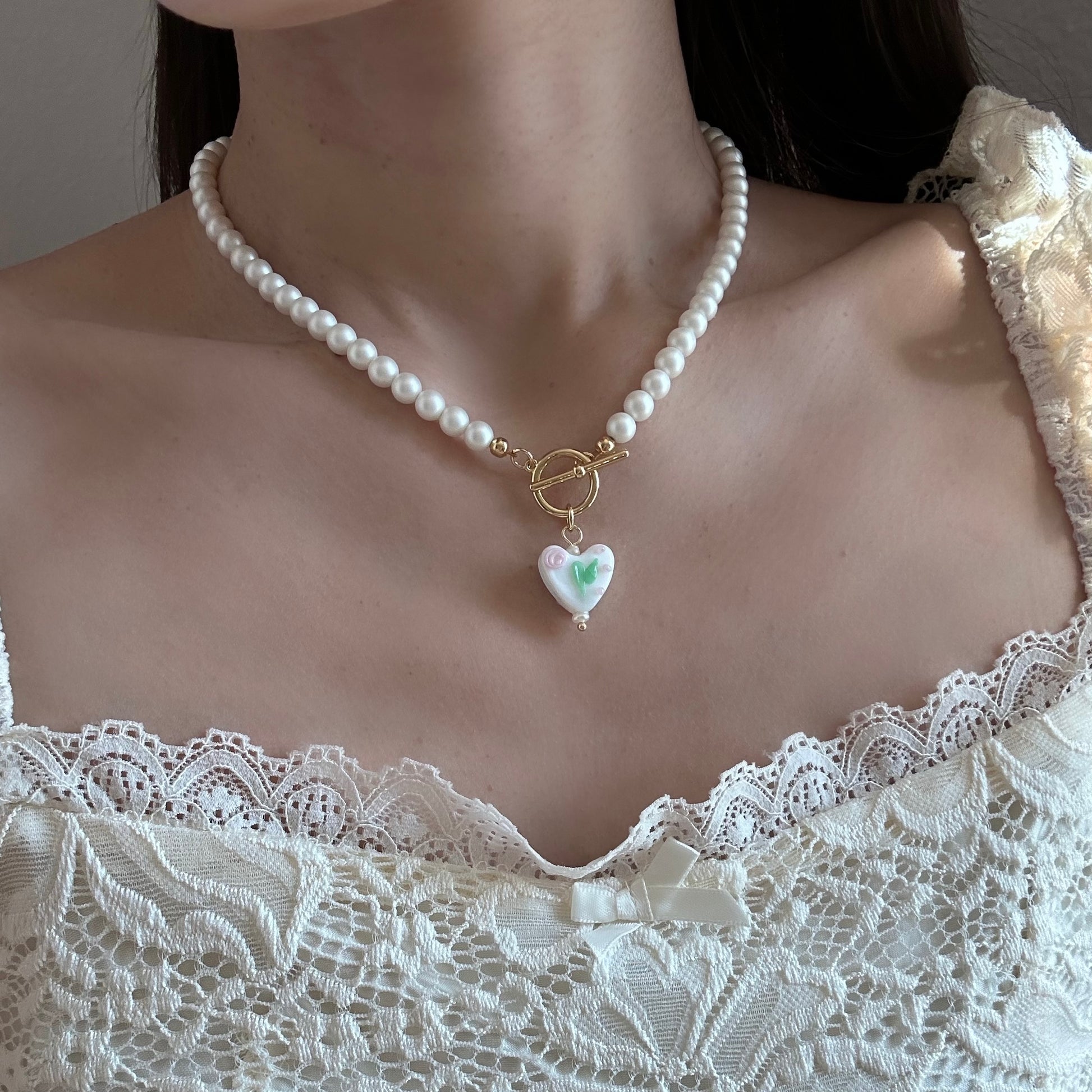 Material: Floral Heart Charm with White Shell Pearls and 14K Gold Filled Clasp.