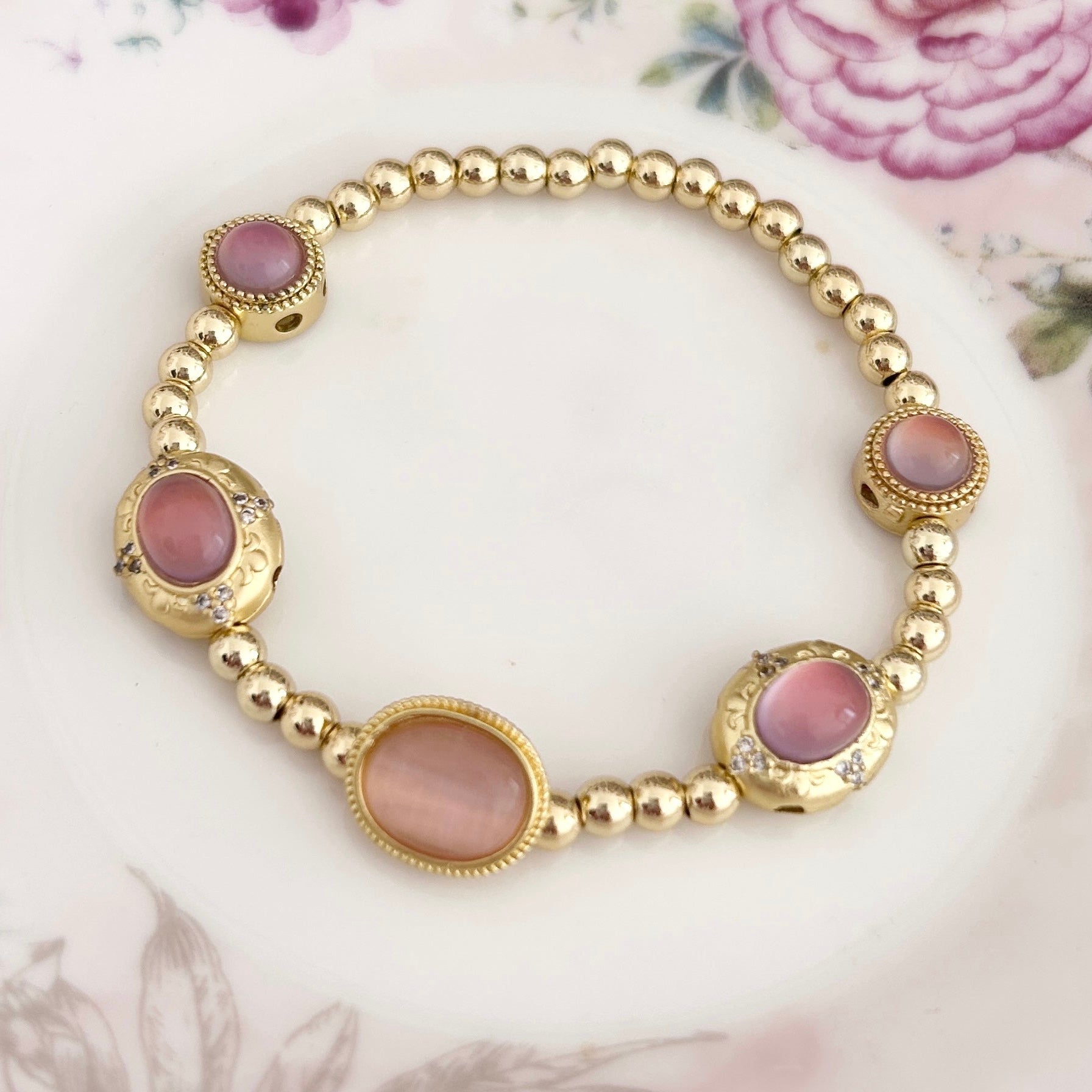 Material: Vintage inspired pink gold charms and 18K gold filled beads.