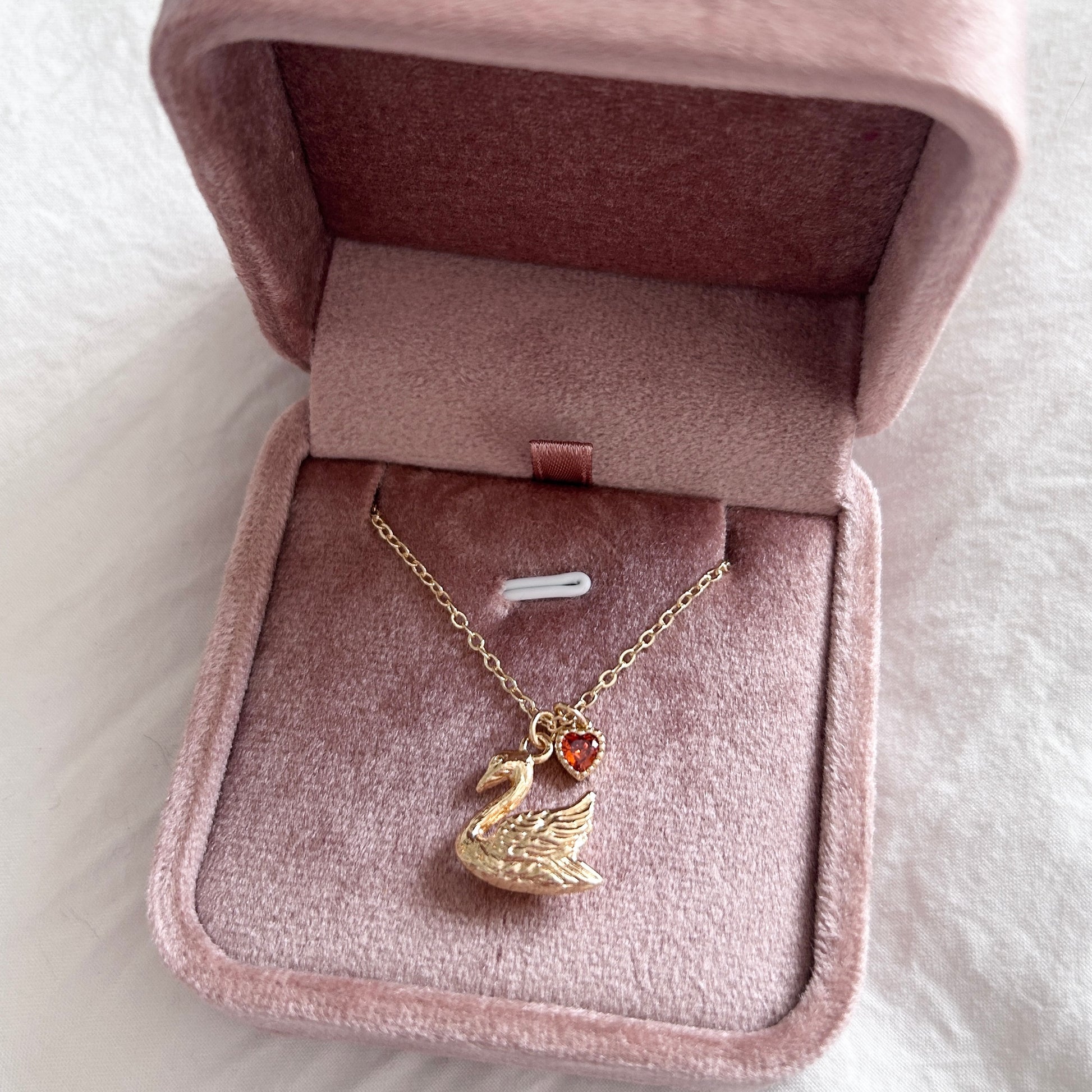 Material: Swan and pink heart charm with 14K gold plated chain.